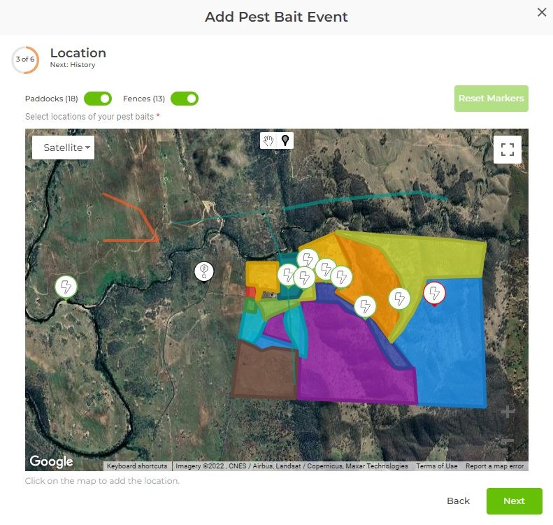 Step 5: Select the location of where your pest baits are kept from the map in the pop-up box. Click on the map to confirm your location and click Next.