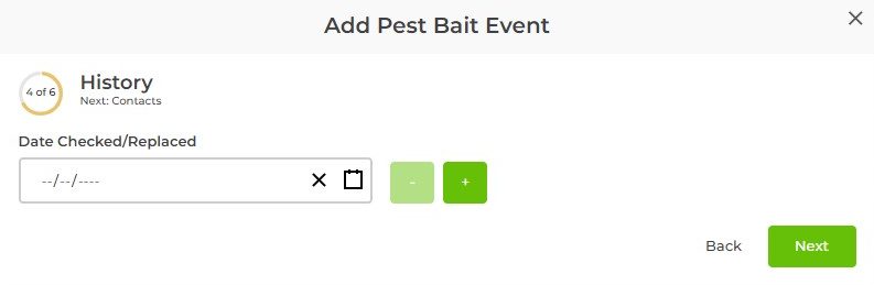 Step 6: Add in the date the pest baits were last checked or replaced and click Next.