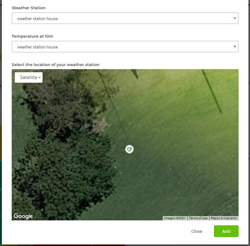 Click Add when you are happy with the placement of your weather station on the map.