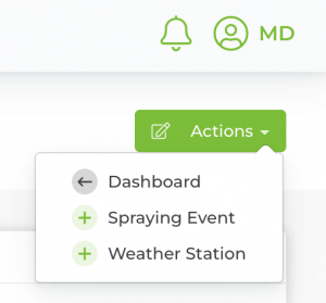 Step 2: Once your main page opens, navigate to the right-hand side of the page. Click on the green Actions button. A dropdown list will open. Click on Add Weather Station.