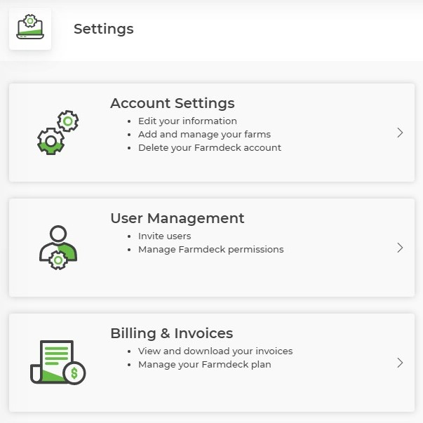 Step 3: Click on the Manage Plans tab underneath the Billing & Payments heading. This will show you an overview of all the plans that are associated to your Farmdeck account.