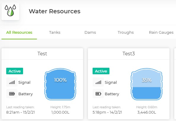Step 2: Your main page will open, displaying all the water resources/sensors that you have available on your farm. Click on the one that you want to edit.
