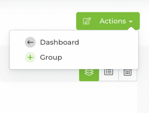 Step 2: When your Planner main page opens, navigate to the right-hand side of the page. Click on the green Actions button. A dropdown list will open. Click on Group.