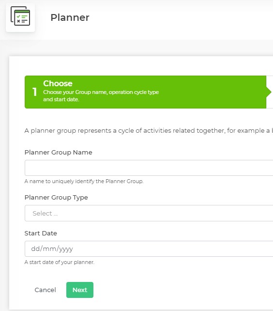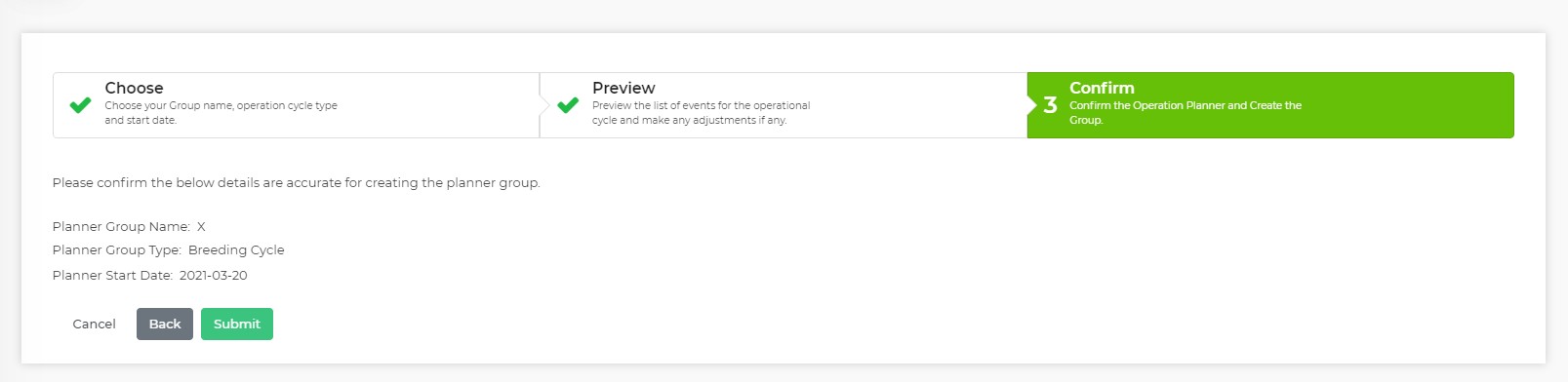 Step 3: A page will open where you can then fill in details. By clicking on the Planner Group Type, you will be able to choose Breeding Cycle. This will allow another dropdown menu to become available where you can fill in the animal type and gender.