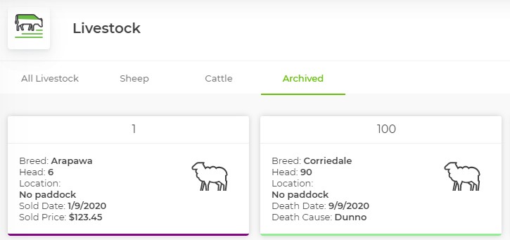 Step 2: When your Livestock main page opens, click on the Archived tab, which is found underneath the Livestock heading.